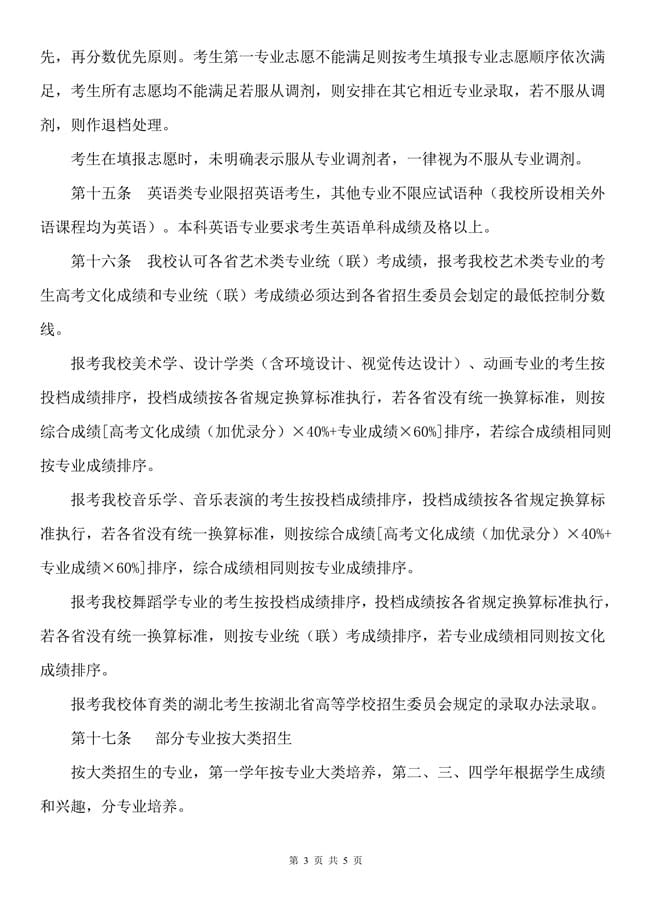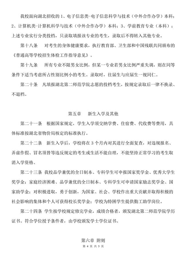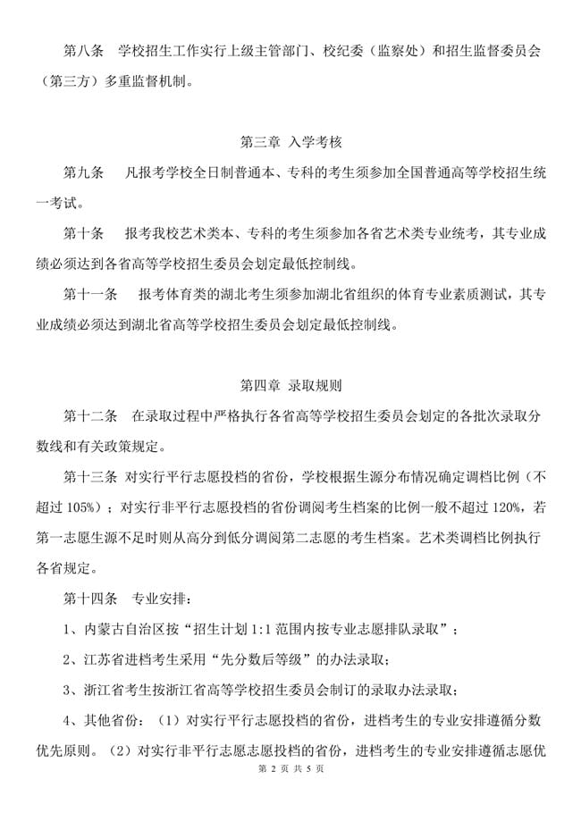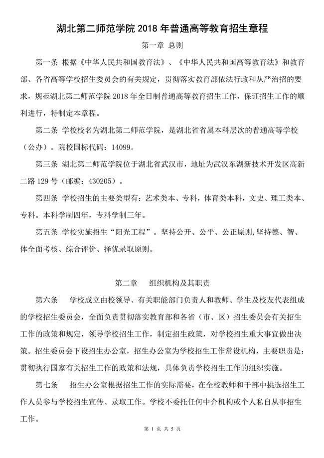 湖北第二师范学院2018年普通高等教育招生章程